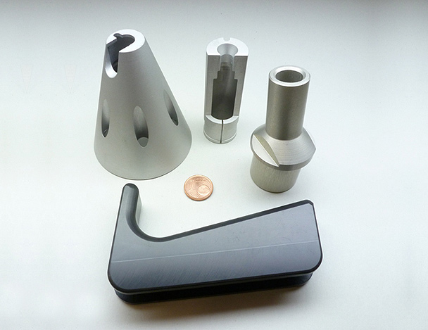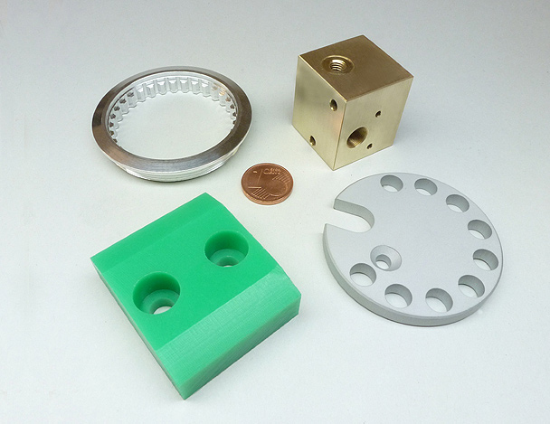 Dies ermöglicht die Herstellung komplexer, anspruchsvoller Fräs-Bohrteile aus allen gängigen zerspanbaren Metallen und Kunststoffen im Bereich 600 x 500 x 400 mm.
